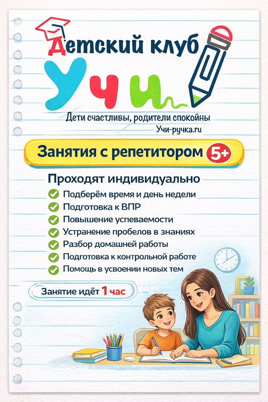 В клубе «Учи-Ручка» дети не только делают уроки, но и находят новых друзей, раскрывают свои таланты и проводят время с пользой. Им будет интересно обсудить прошедшее занятие со сверстниками и поделиться возникшими трудностями.