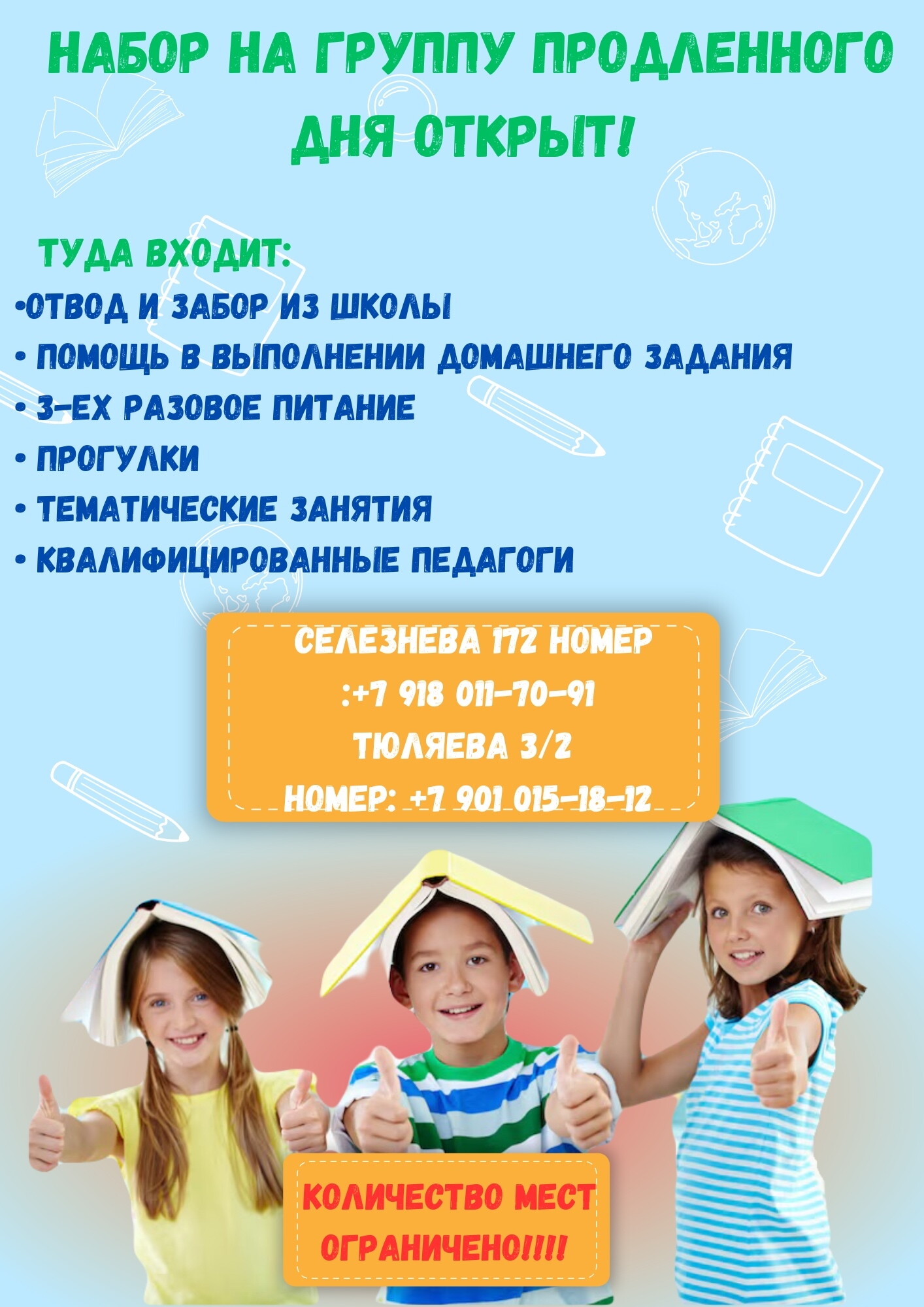 Под руководством опытных специалистов дети выполняют домашние задания, участвуют в развивающих играх, творческих мастер-классах и спортивных активностях. Мы создаём атмосферу дружбы и взаимопомощи, где каждый ребёнок чувствует себя комфортно и уверенно.